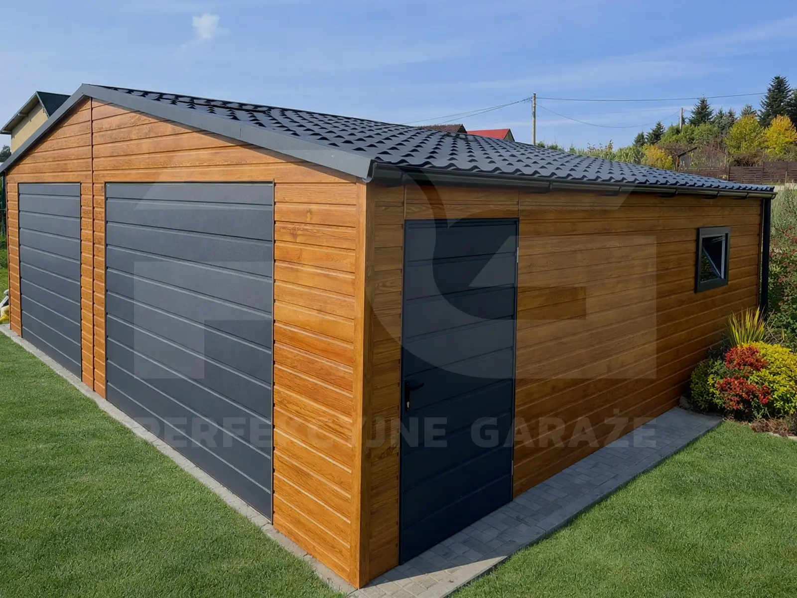 Konstrukcję opieramy na profilu zamkniętym ocynkowanym, a poszycie montujemy starannie, dlatego garaż trzyma sztywność i dobrze znosi warunki zewnętrzne.