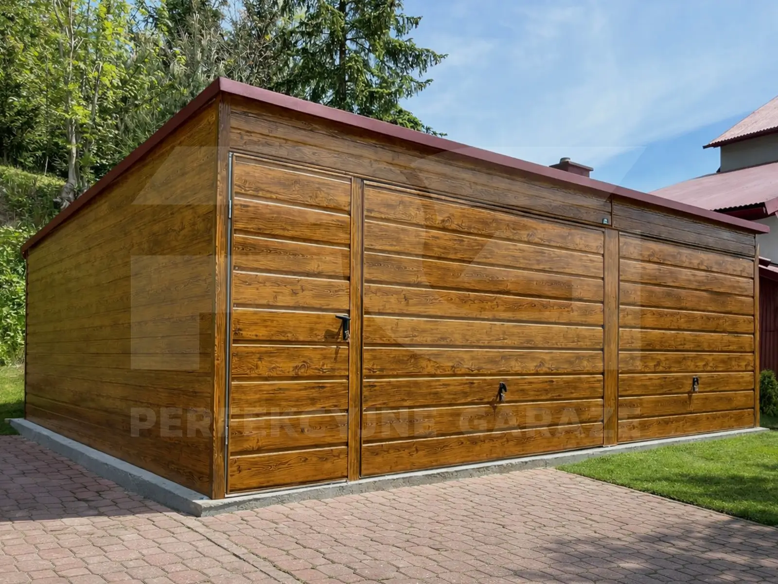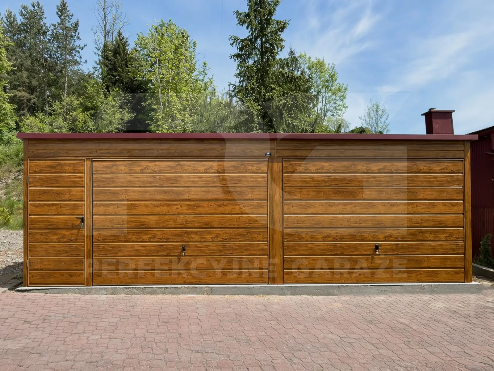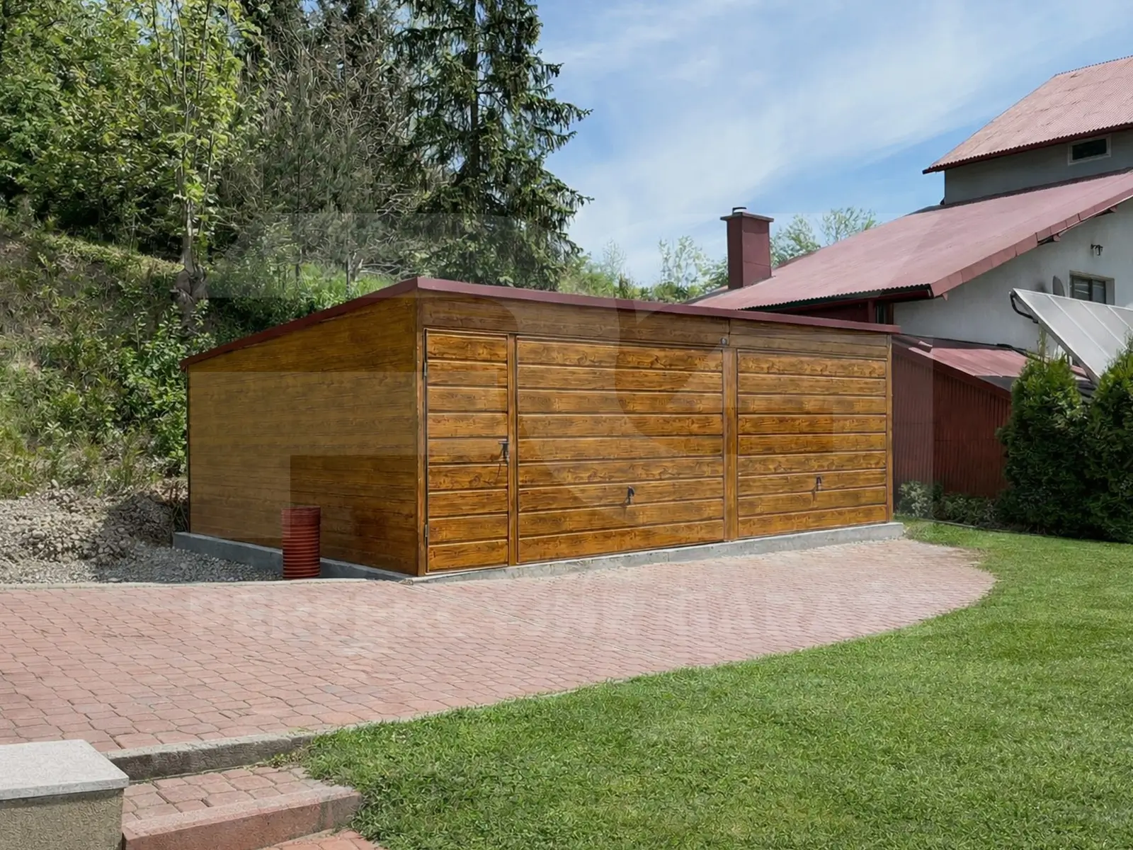 Garaż podwójny 7 × 6 Premium ze spadem dachu na tył – praktyczny układ na dwie strefy