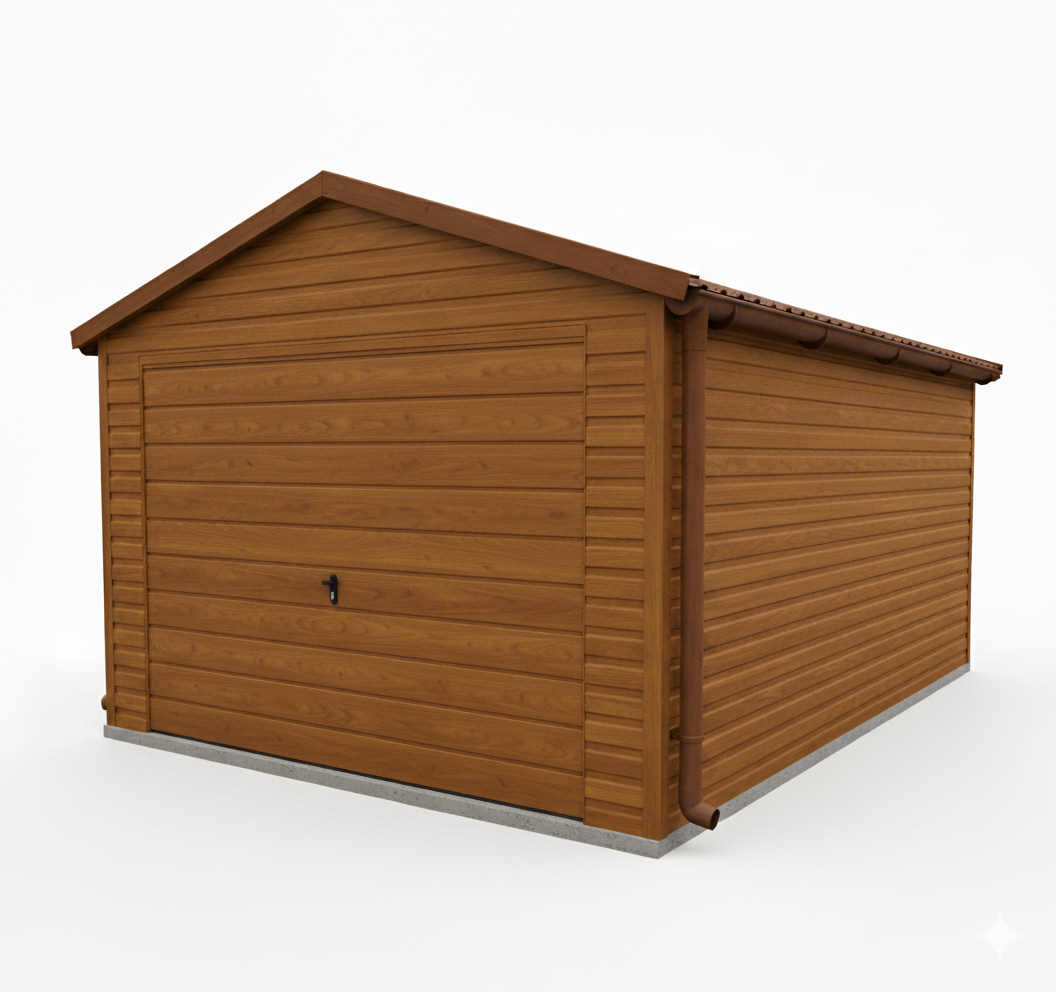 *Ściany zostały wykonane z blachy drewnopodobnej złoty dąb multigros, profil blachy trapez T-8,  ściany mogą być wykonane w dowolnym kolorze z naszej palety.