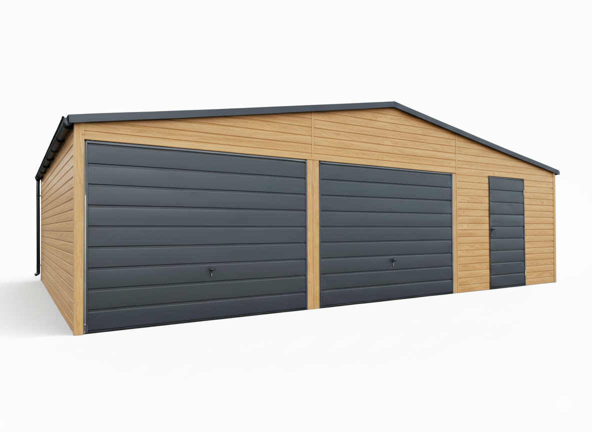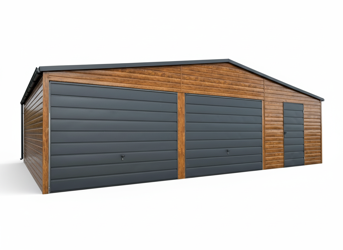 Garaż blaszany klasy PERFECT o wymiarach 9m x 6m podwójny lub potrójny .